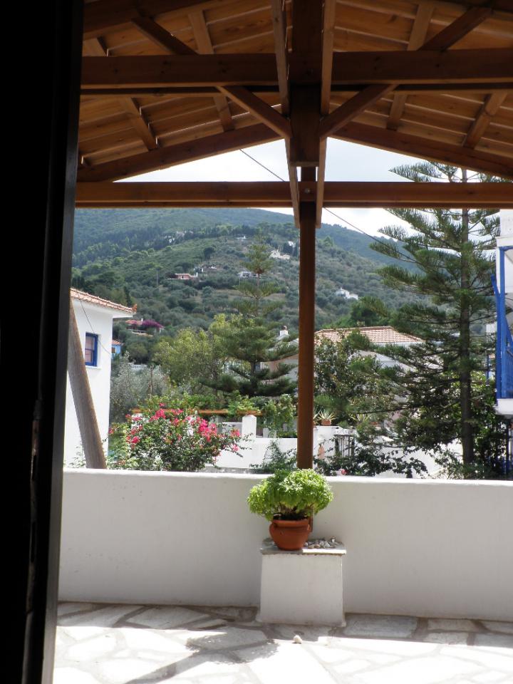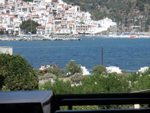 με θέα το Αιγαίο Πέλαγος, τη χώρα της Σκοπέλου αλλά και το βουνό.
